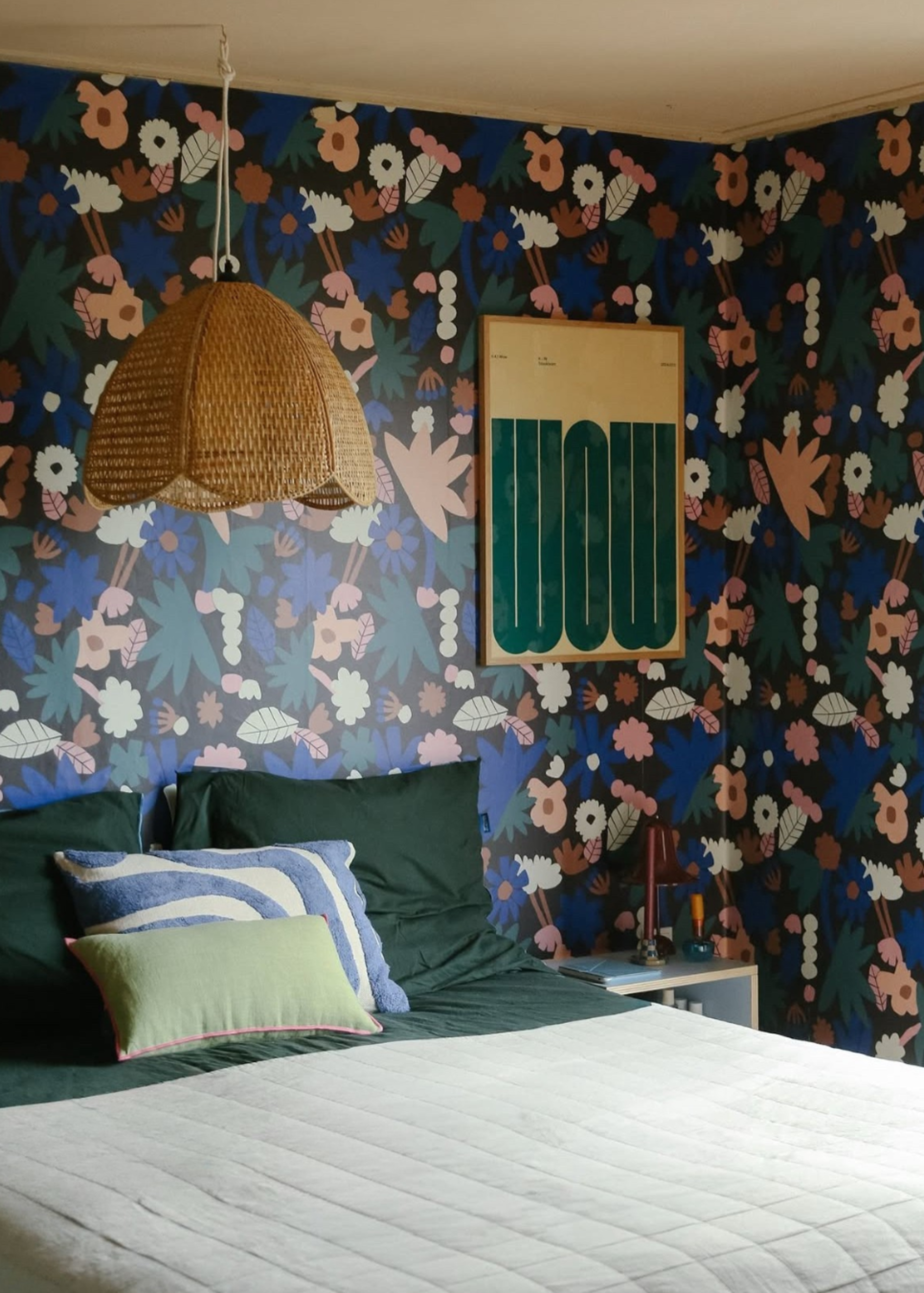Guided by deep colours and graphic blooms, her designs blend nature’s softness with a striking artistic edge. The result is a warm, expressive wallpaper story that transforms any room into a place filled with character and quiet magic.