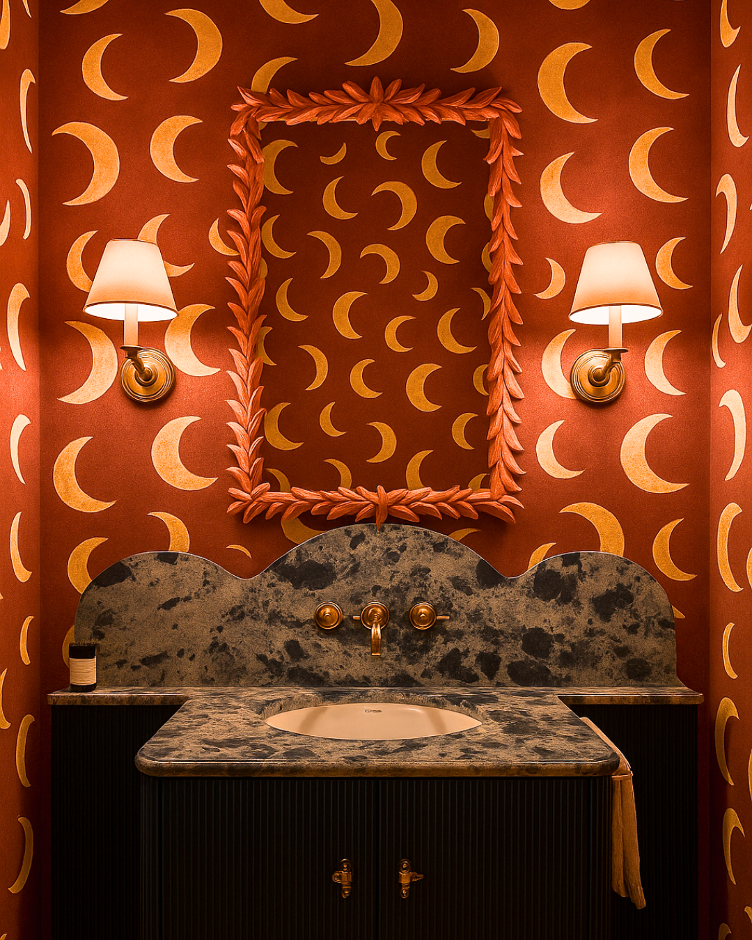 Create a warm and inviting atmosphere in your child's room with the Moon Wallpaper in Rhubarb from Meet Me at the Wall. Inspired by the deep, rich hues of rhubarb, this bold bordeaux red brings character, coziness, and a sense of calm to any interior. Ideal for adding warmth and personality to nurseries, playrooms, or reading nooks.