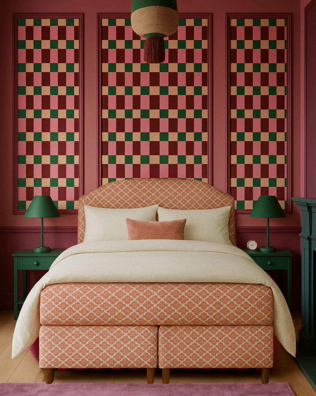 Use Playful Blocks as a statement wall behind a bed, desk, or dining table. Balance the bold pattern with natural materials like wood, rattan, or linen. Pick up colours from the pattern in accessories such as cushions, posters, or accent décor. For a playful twist, use the wallpaper as a wainscoting paired with a solid paint colour above.