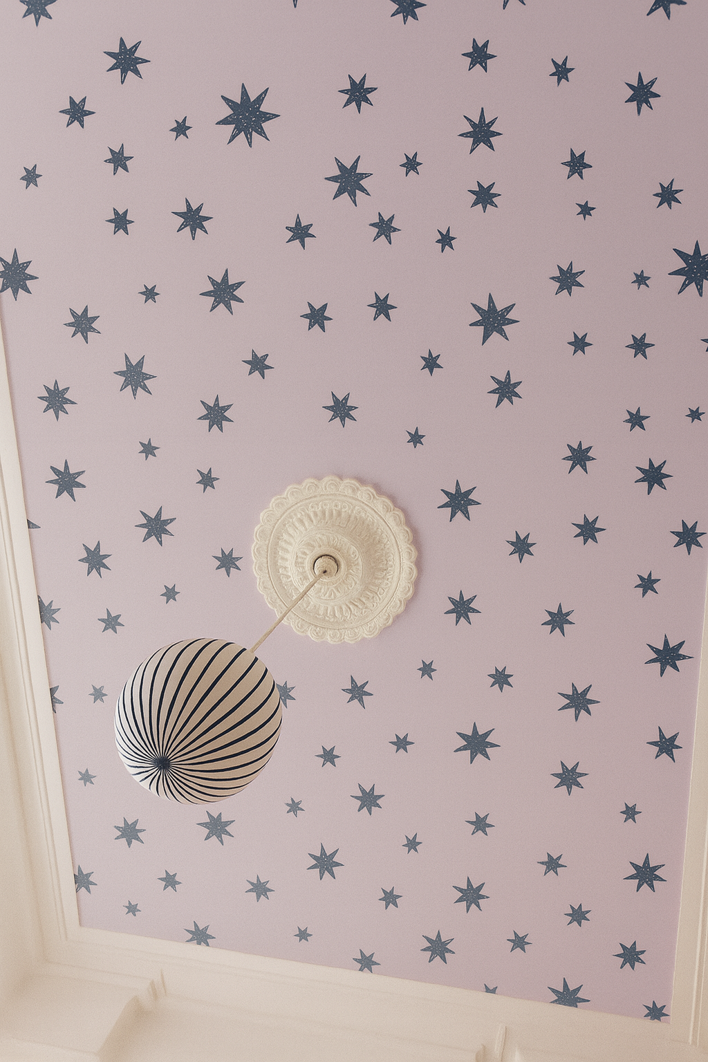 Bring a playful and stylish atmosphere into your child’s room with the Starry Night – Lilac Wallpaper from designer Joëlle Wehkamp. Featuring hand-drawn stars in various sizes dancing across the wall, the contrast between the soft lilac background and the dark blue stars creates a fresh, dreamy, and modern look.