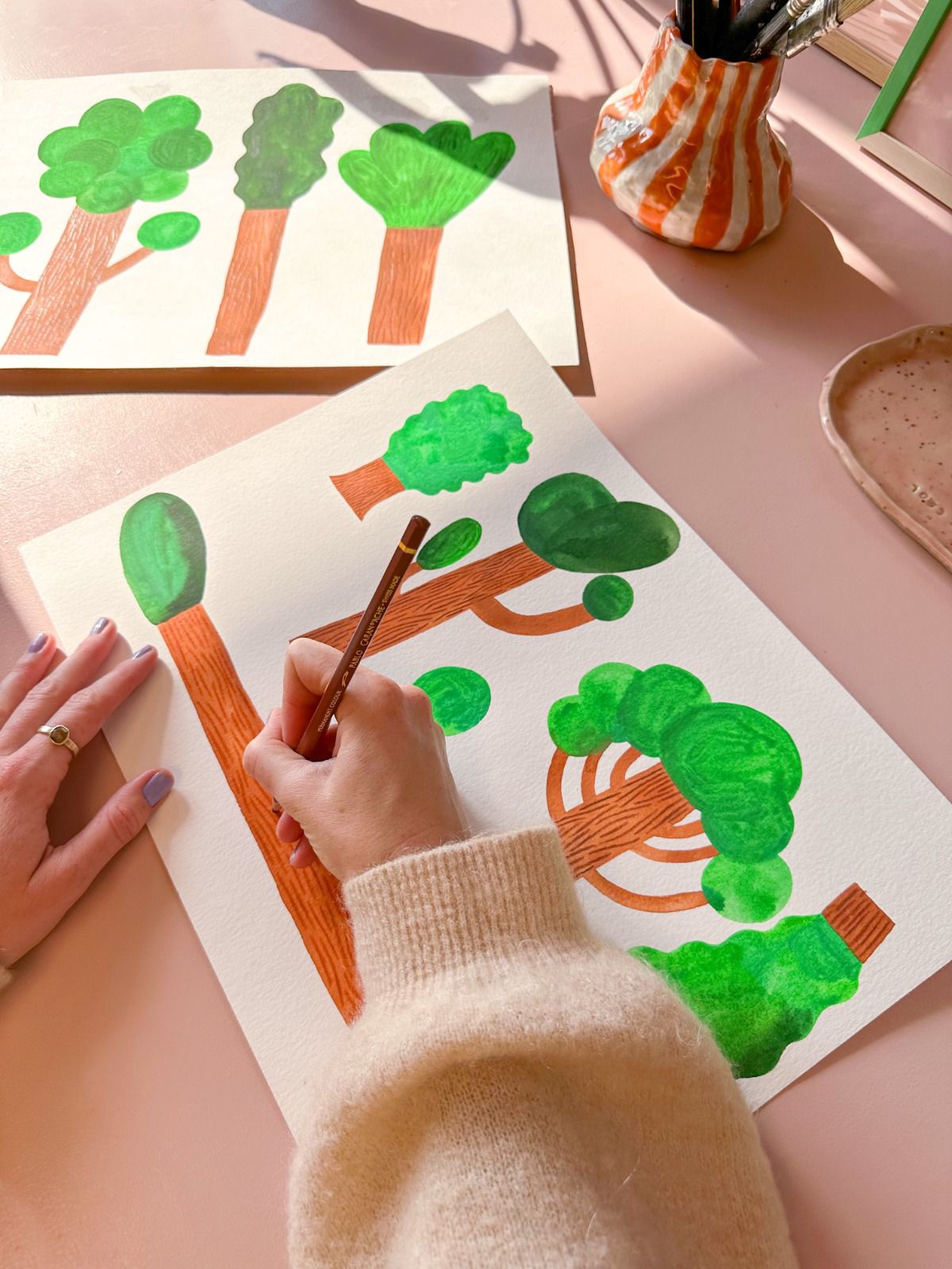 With its variety of tree shapes and sizes, this unique forest wallpaper reveals new details with every glance. The hand-drawn texture adds richness and movement, transforming your wall into a true piece of art.